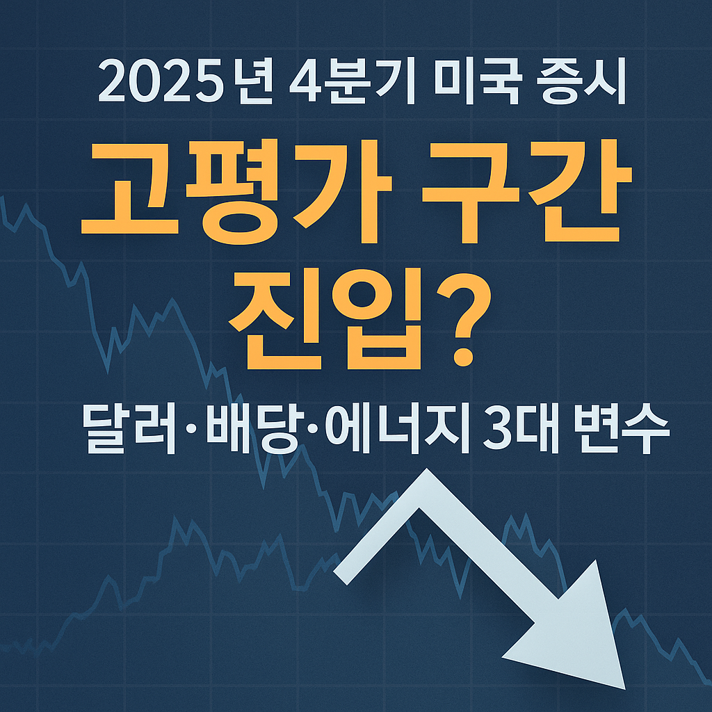 2025년 4분기 미국 증시는 고평가 부담 속 조정 국면에 진입했습니다. 배당주 회복, 달러 약세, 에너지 조정이 핵심 변수로 작용하며, 리밸런싱이 필요한 시점입니다.