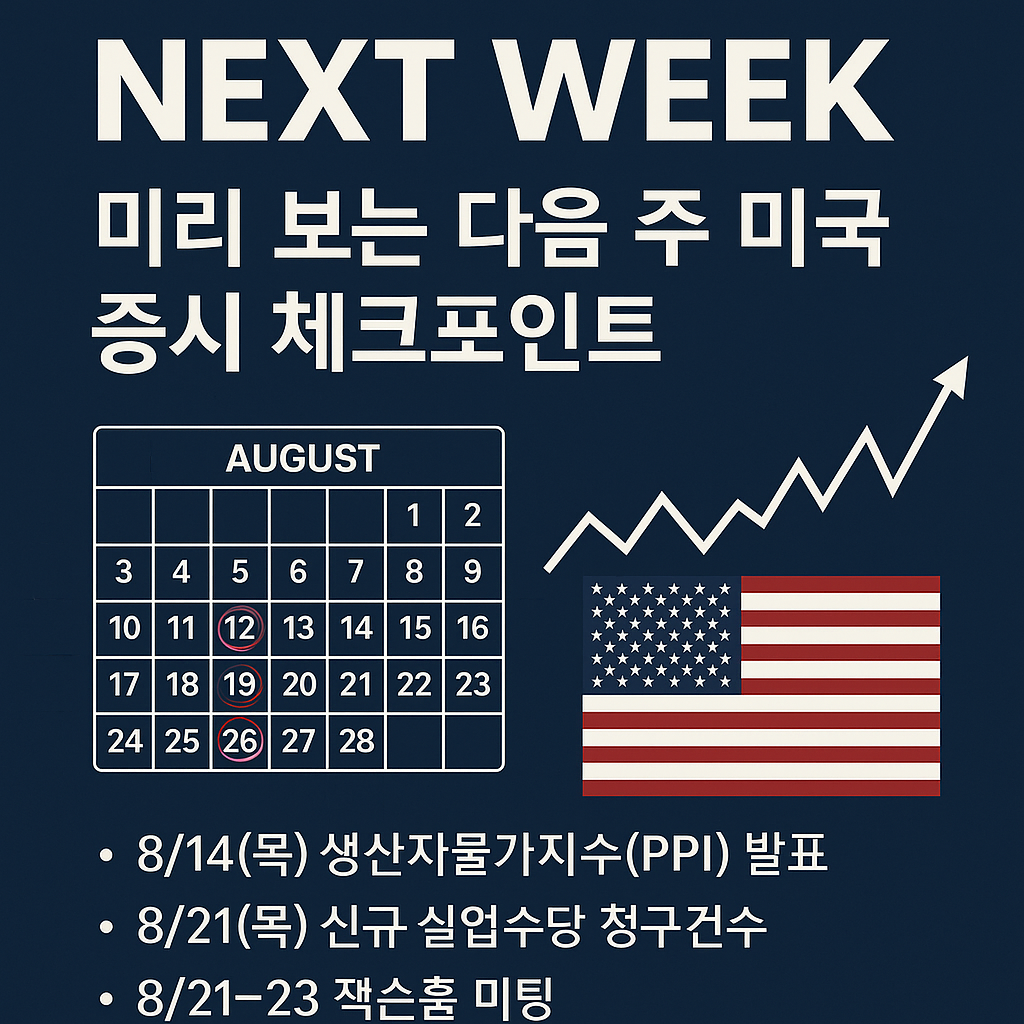 - 경제지표: 미국 7월 CPI와 PPI가 발표되며, 인플레이션 둔화 여부가 확인됩니다.