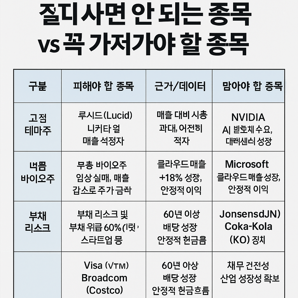 📊 피해야 할 종목 vs 가져가야 할 종목 요약 (2025년 하반기 기준)